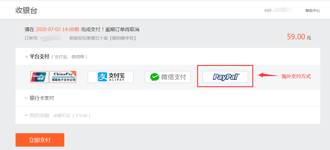 1、在支付时,您可以选择“平台支付”--“paypal”;