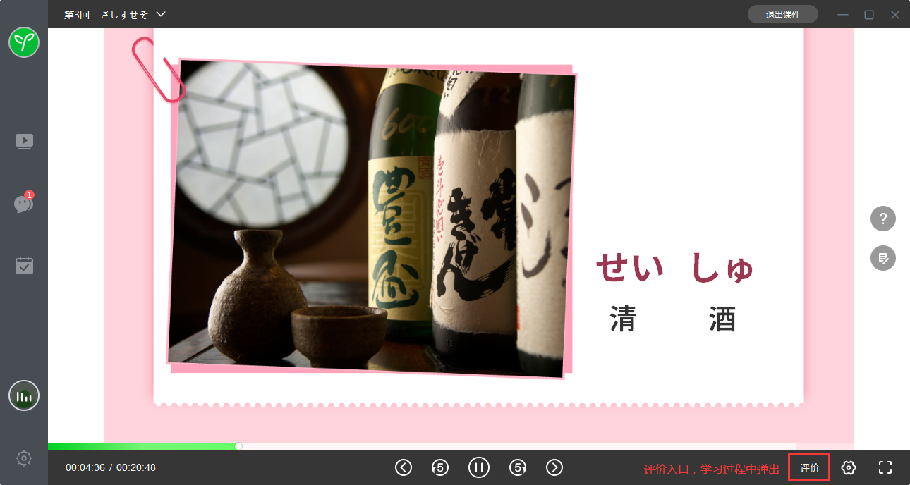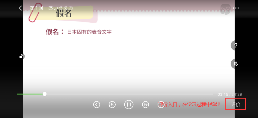 方法:进入APP学习课件,打开课件需要学习一段时间后,在课件右下角会出现评价入口,具体如下图:
