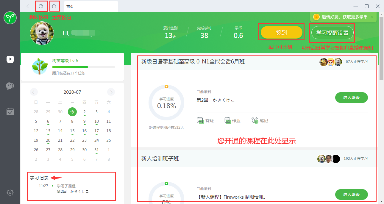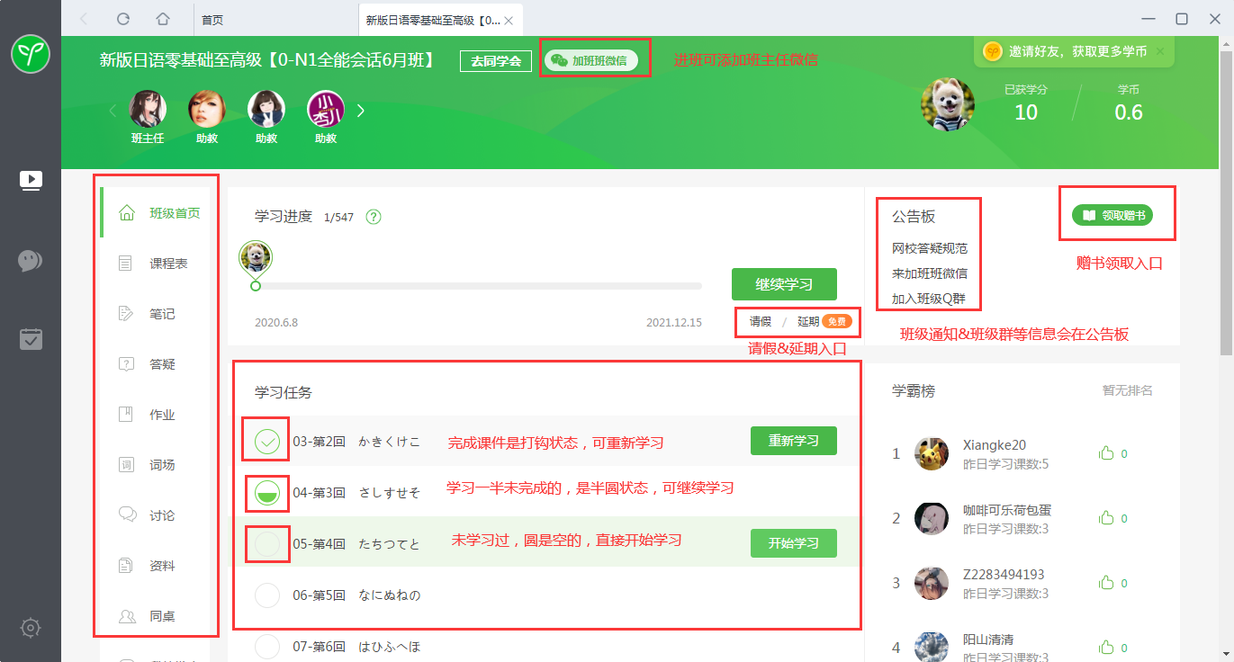 第二步:学习课件,可以点击“进入班级”,进入到班级首页,具体如下图: