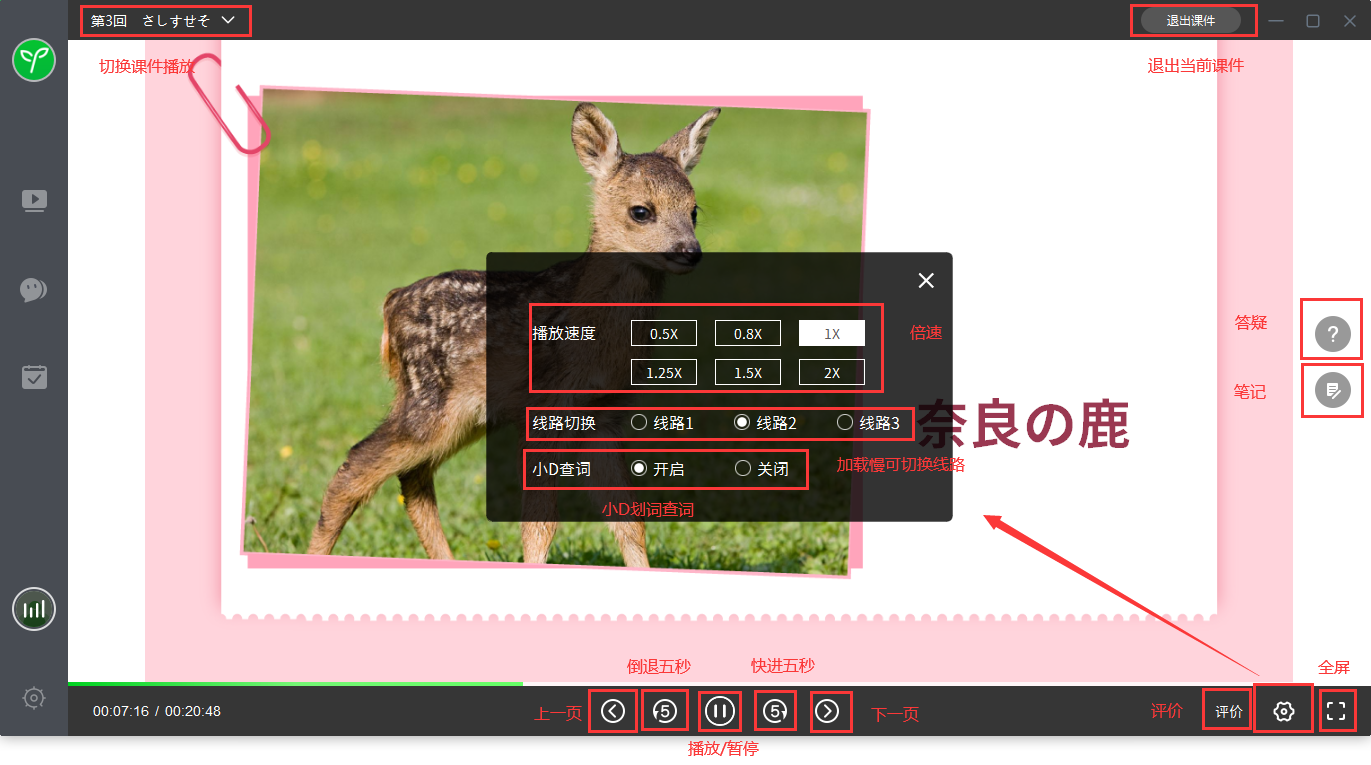 第三步:点击“开始学习”进入到课件播放页面,具体如下图: