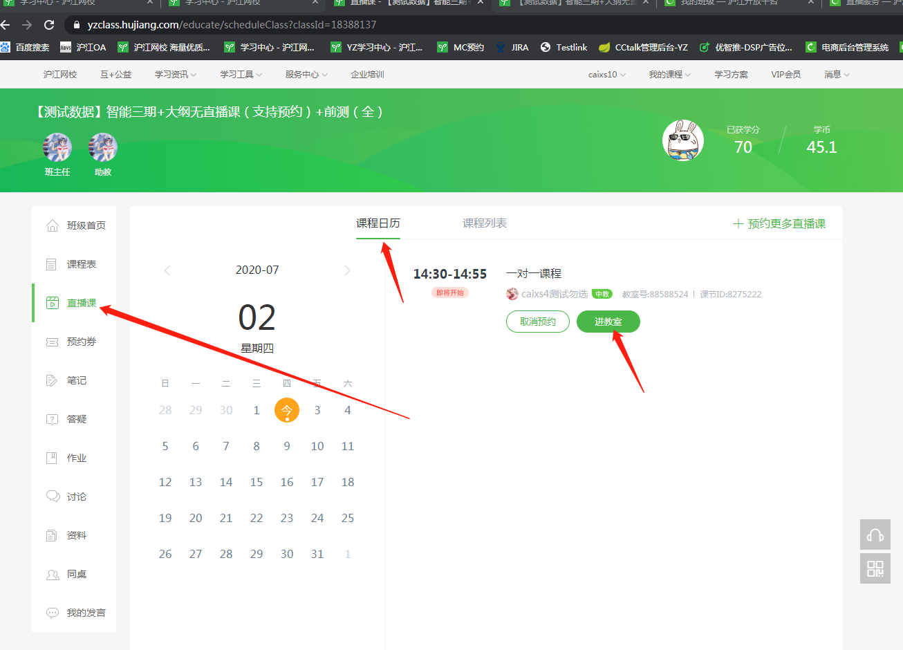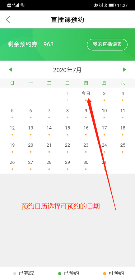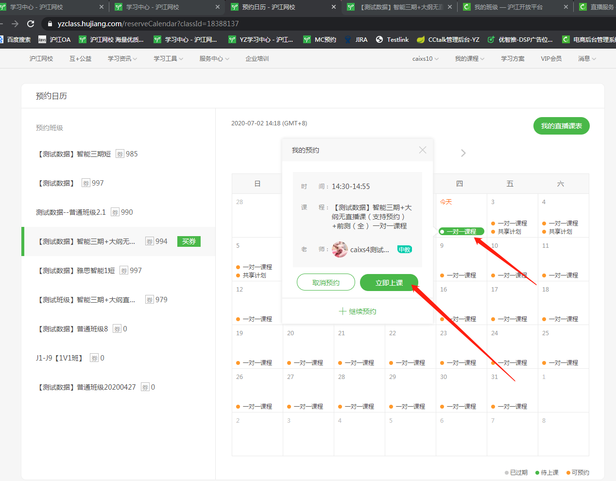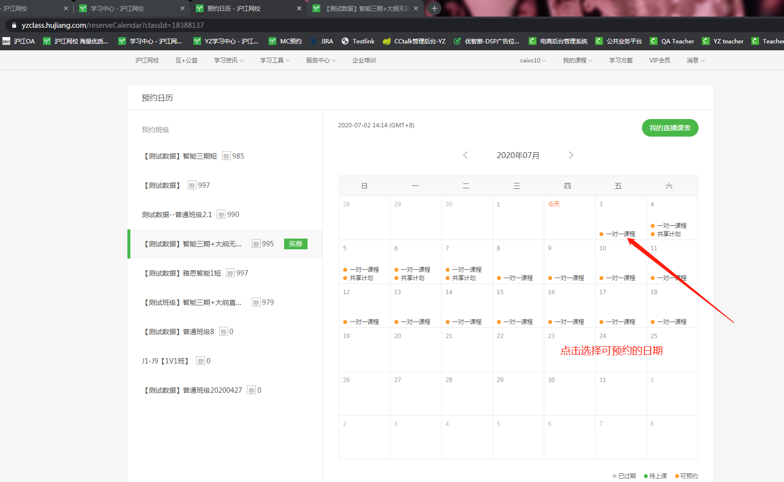 3.2 班级首页大纲内有直播课的班级,老师排课后点击预约进入预约日历