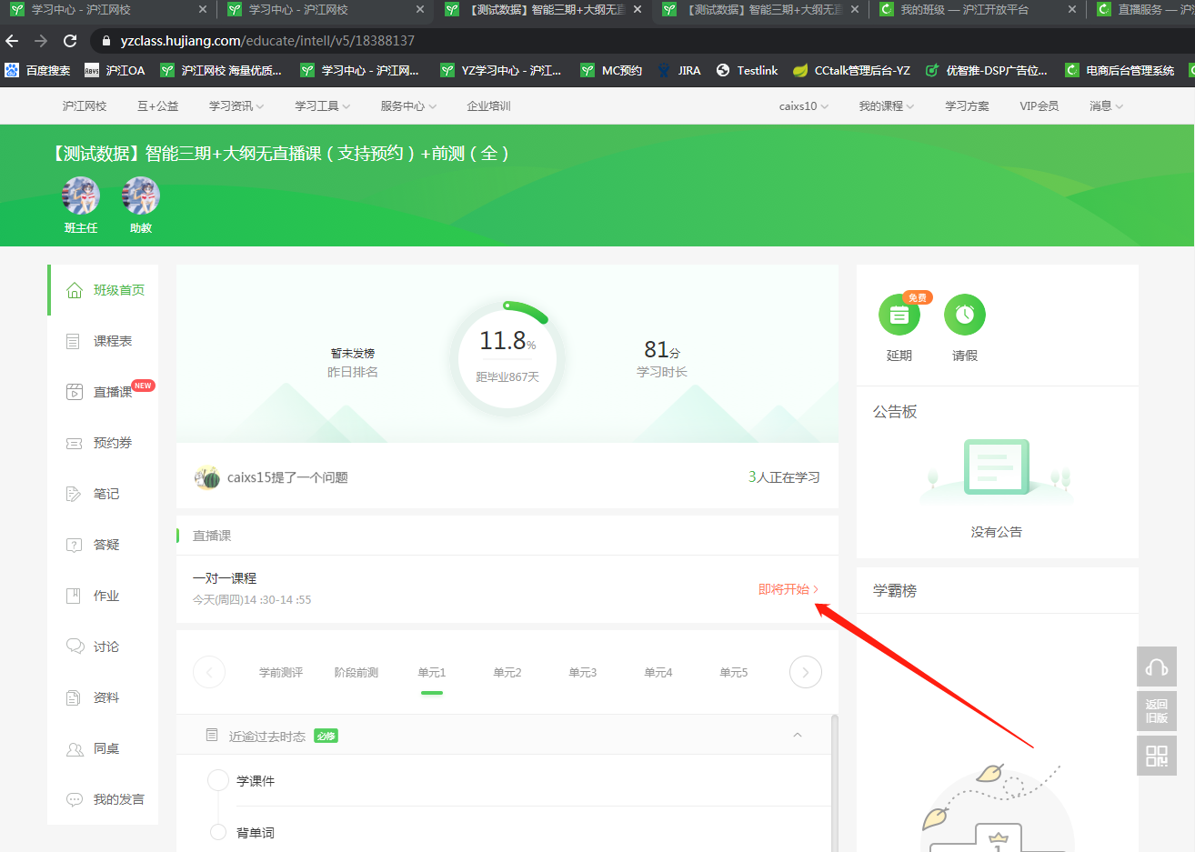 1.3 PC 智能班级首页,大纲内无直播课的班级,首页点击“即将开始”或“立即上课”(直播课开始前15min~直播课结束)可唤起网校客户端