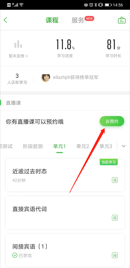 3.1 班级首页大纲内无直播课的班级 预约入口“去预约”
