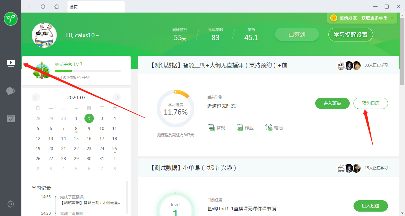 1. PC端学习中心—预约日历/班级首页/直播课日历页面+直播课待上课页面